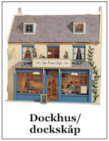 Dockbutiken säljer dockhus, miniatyrer och gör-det-själv-material för dockskåp och tittskåp. Sortimentet är i skala 1:12. Observera att det här är ett sortiment för samlare över 12 år och artiklarna inte är leksaker utan samlarobjekt att hantera varsamt. Stoy dockhus är av enklare kvalitet och säljs därför inte i Dockbutiken. Klicka på bilderna för massor av fina produkter skala 1:12. Tips! Klicka här för att komma till dockhus för barn>>