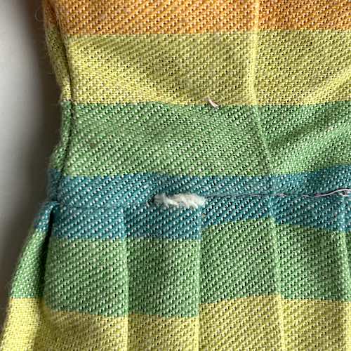 Den färgglada klänningen ur setet #1619 Fun n games från 1965-66 i fint lekt skick - dock behöver ett veck bak fästas med några stygn. Se bild nedan.