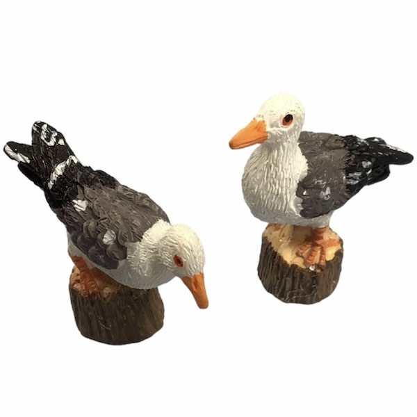 Set med två stycken välgjorda fiskmåsar tillverkade i keramisk polyresin och handmålade. Mått en fiskmås ca H 2.7cm x B 3.7cm x D 1.3cm