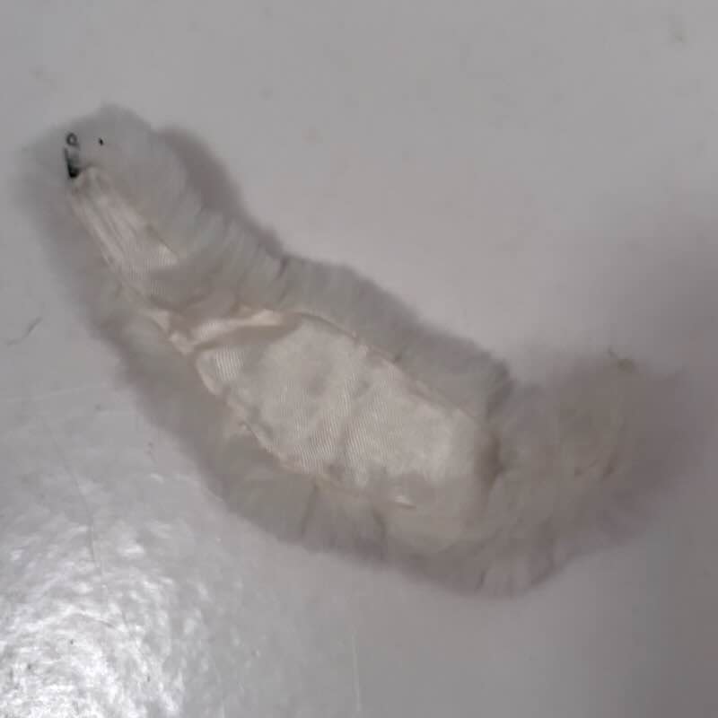 Barbies vackra stola i kaninskinn klädd med vit satin. Knäppningen behöver ett stygn för att funka. Annars vit och fin utan fläckar eller annat. Används t ex till setet Junior Prom från 1965.