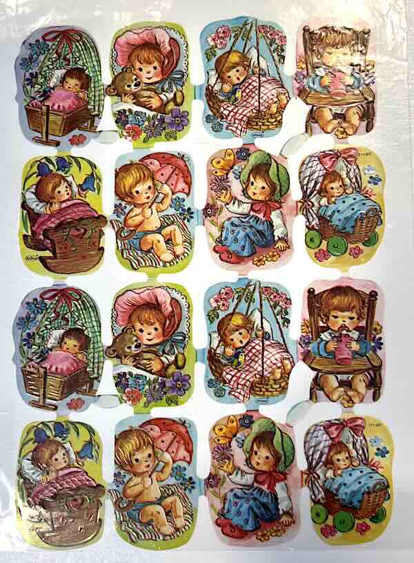 Ett ark med söta bokmärken i vintage-stil, med klassiskt motiv. Mått arket ca 16x25 cm.