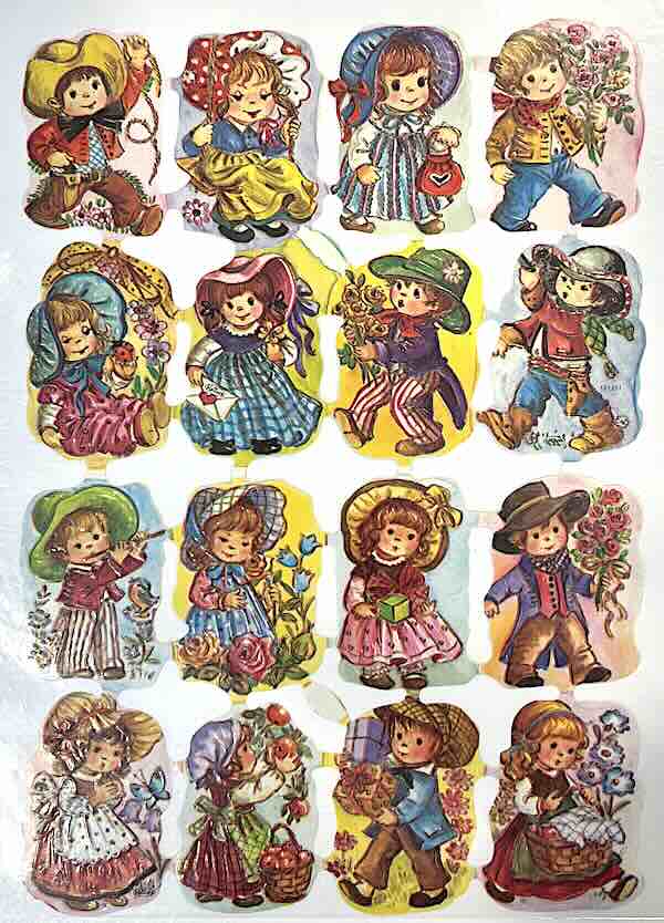 Ett ark med söta bokmärken i vintage-stil, med klassiskt motiv. Mått arket ca 16x25 cm.