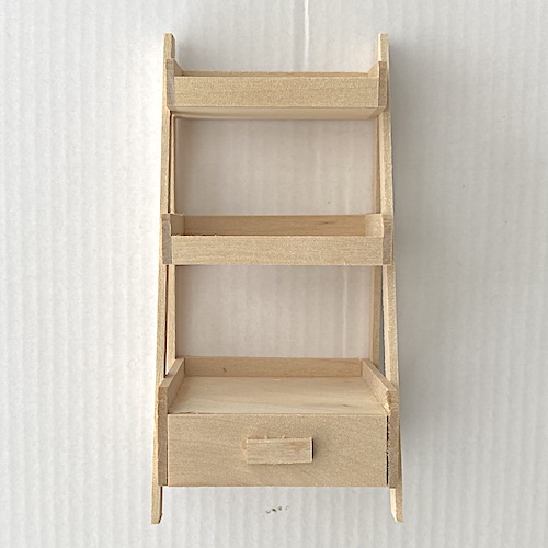 Praktisk och snygg butikshylla eller caféhylla i obehandlat trä med utdragbar låda nederst. Mått ca H 11cm x B 5,3 cm x D 5,3 cm