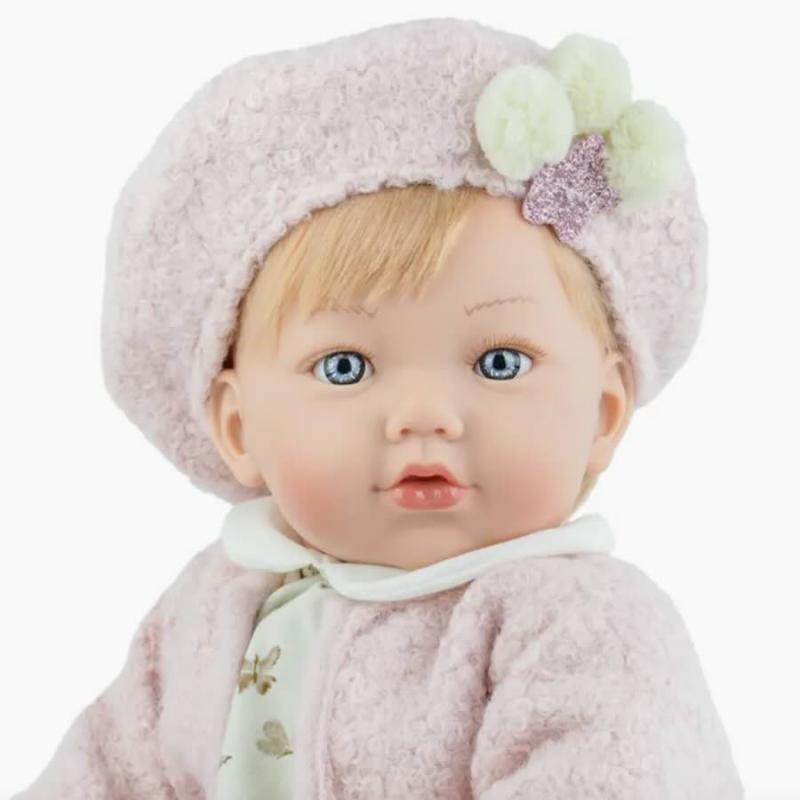 Charmiga dockan Alina Farfalla med ljust hår och blå ögon med ögonfransar. Dockan har mjuk kropp, Klädd i plaggen på bilden: strumpor, lekdräkt, jacka, mössa. Dockan passar från 3 år. Mått ca L 45 cm. Hon kommer i en fin presentförpackning.