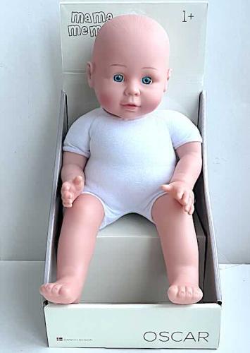 En charmig docka från danska Mama Memo. Dockan har mjuk stoppad kropp och kan vara flicka eller pojke, det bestämmer du själv. Huvud armar och ben i vinyl. Ögonen är fixerade (kan inte stängas). Mjuk och mysig att gå runt och bära på. Dockan kommer iklädd kläderna på bilden; sparkdräkt/byxdress och hårband. Kläderna går enkelt att ta av för små barn. Kläder storlek 40 cm passar dockan. Passar alla barn från 1 år. För rengöring torkas dockan med fuktad trasa. CE-märkt/UKCA. Dockan är fri från giftiga mjukgörare och parfymer.