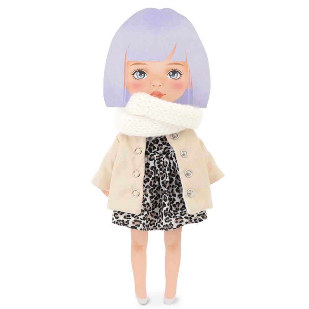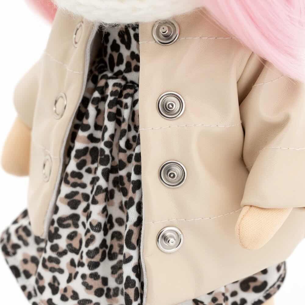 Mycket snyggt klädset med jacka, halsduk och leopardklänning till Sweet sisters dockor. Enkel att klä på och av. Handtvätt 30°, ska ej strykas eller torktumlas.