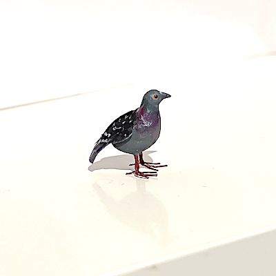 Mycket söt liten duva, handgjord i Sverige av skickliga Helles Miniatures i ståltråd, färg, riktiga fjädrar och dun. Duvan mäter ca 3,2 cm från huvud till stjärtfjädrar. (Fågeln är lös och sitter inte fast på någon kvist) Eftersom alla är handgjorda och handmålade kan fåglarna skilja sig åt lite grann. OBS! Detta är ingen leksak utan miniatyr att hantera varsamt.