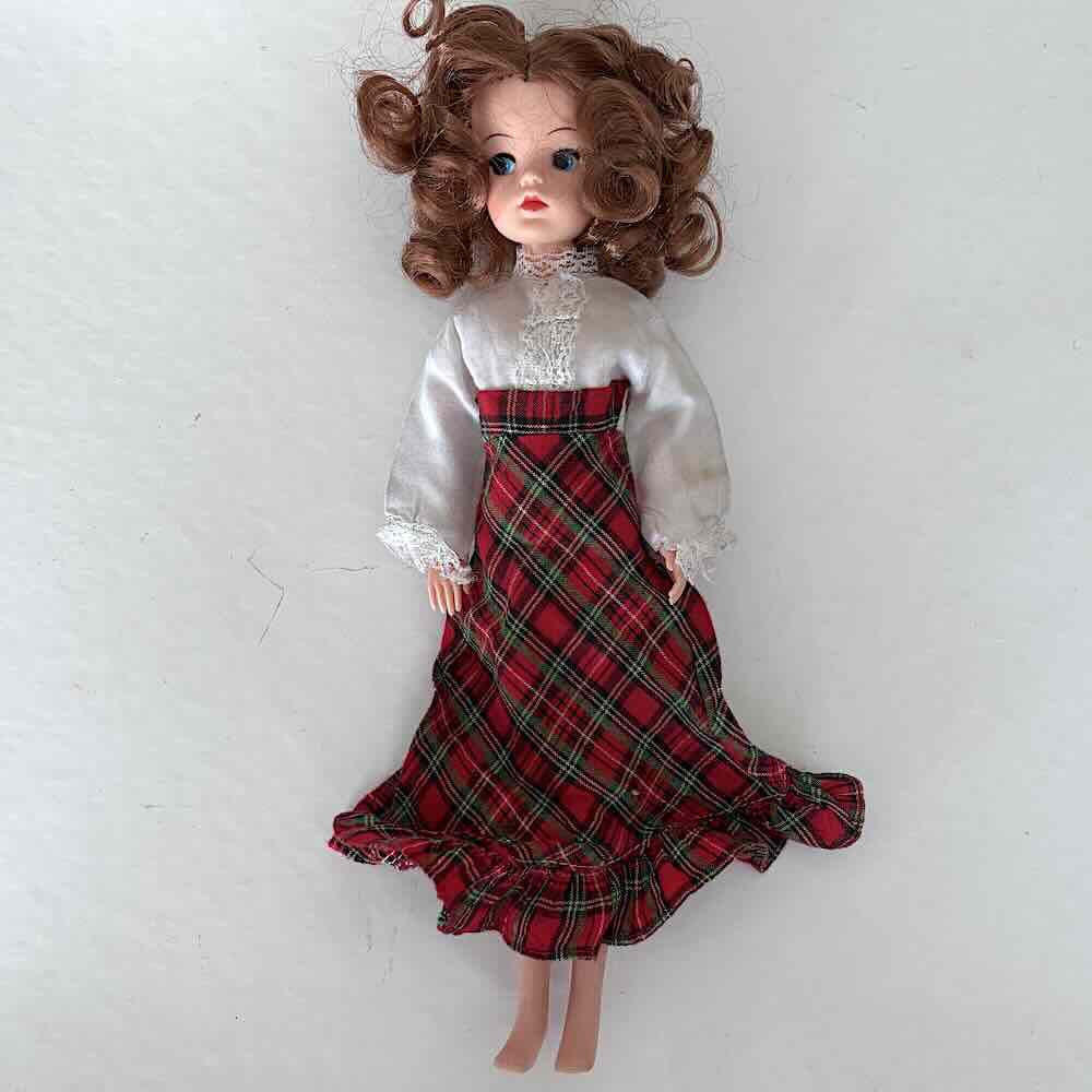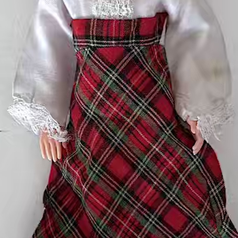 Söt klänning som passar Sindy, Petra och andra fashion dolls. Klänningen behöver ett par stygn vid ärmsluten och ngt i ena armhålan. För övrigt en klänning i bra lekt skick från 1970-80-talet. Ingen tillverkare angiven