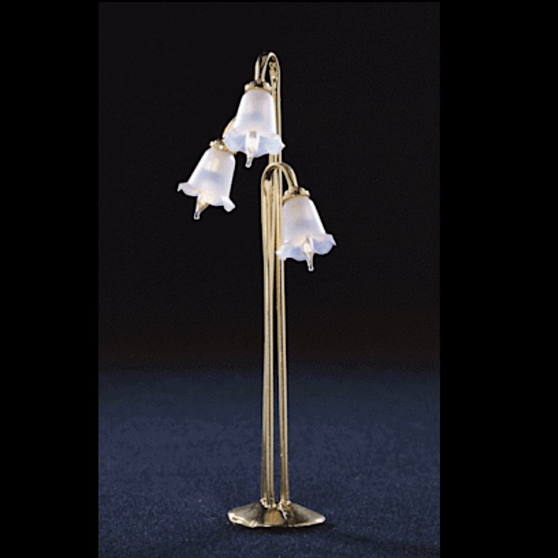 Vacker trearmad golvlampa. Elektrisk, 12V. Mått ca H 10 cm. Glödlampor utbytbara.