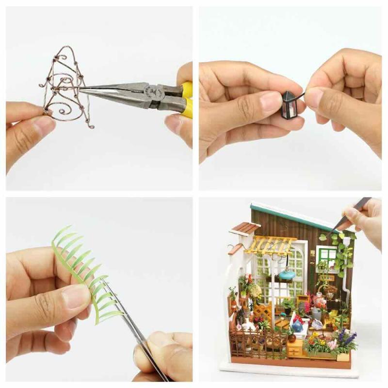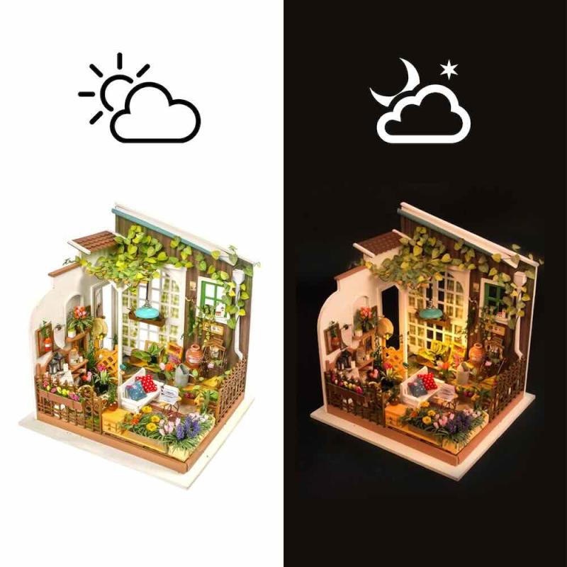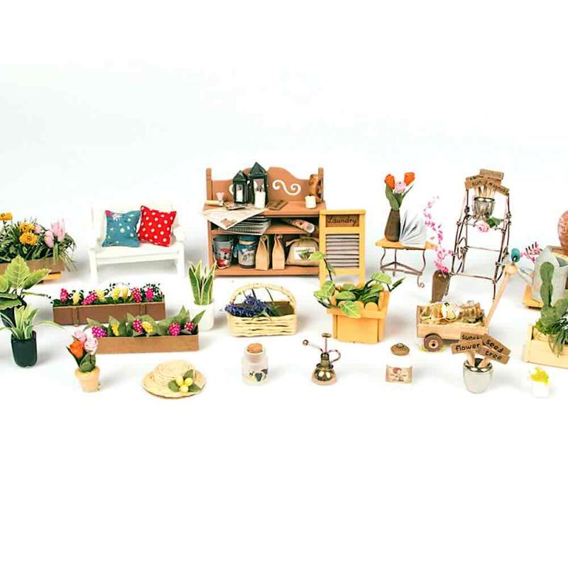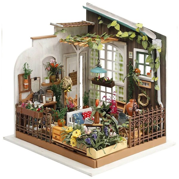 Millers terrass eller blombalkong från Rolife i skala 1:24 är ett härligt kit som med massor av pyssel och byggande blir till en superfin och detaljerad miniatyrvärld. Se på bilderna och jämför med storleken så förstår du! Setet är helt omonterat och består av över 100 mycket små delar och är väldigt komplext att sätta ihop och rekommenderas därför från 14 år och uppåt – det här ingen leksak, det krävs noggrannhet och tålamod! Lim, färg och diverse verktyg ingår. Utförliga instruktioner medföljer – följ dessa noga! Färdigbyggd storlek: 210×195×183 mm.