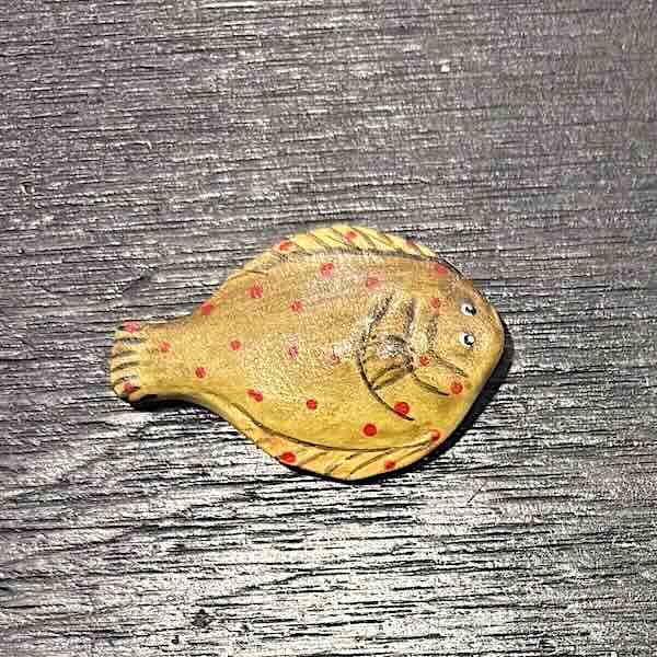 Fin och välgjord rödspätta för dockhus och tittskåp. Tillverkad i lera/keramisk polyresin och handmålad. Mått ca L 3,6 cm. Finns även fler fiskarter, fiskespö och håv i sortimentet.
