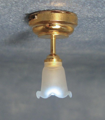 Söt taklampa med tulpanformad kupa. Batteridriven. Mått ca H 4 cm. Lilla batteriet behövs.