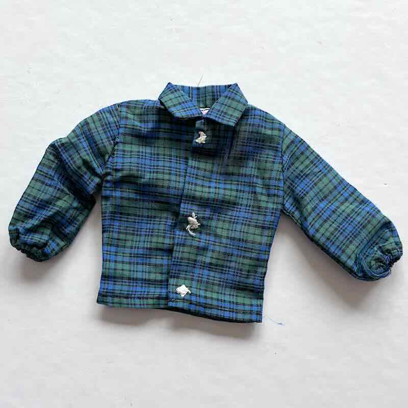Blusen ur setet Tressy In the Office 1964-1969-tal från Palitoy. Blusen har isydda tryckknappar och synliga vita trådar där de är fästa. I övrigt bra.