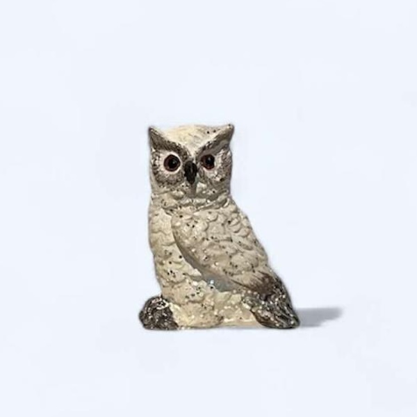 Superfin och detaljerad uggla i skala 1:12. TIllverkad i keramisk polyresin och handmålad. Tyvärr med lite glitter på! Men den är verkligen fin ändå - blir lite magisk. Mått ca H 2,9 cm