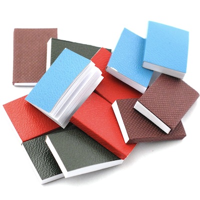 Ett set med 12 st böcker för bokhyllan. I flera olika färger. Mått varje bok ca h 2 cm x b 1,3 cm.