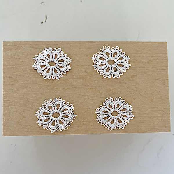 Litet set med fyra stycken söta spetstabletter enligt bild. Mått ca B 2,8 cm