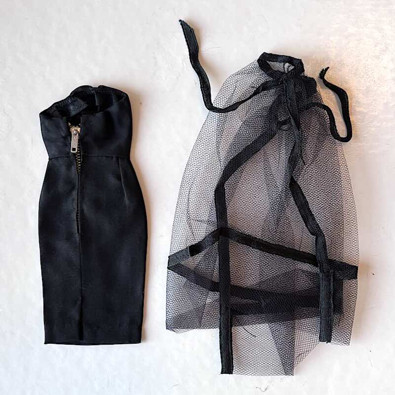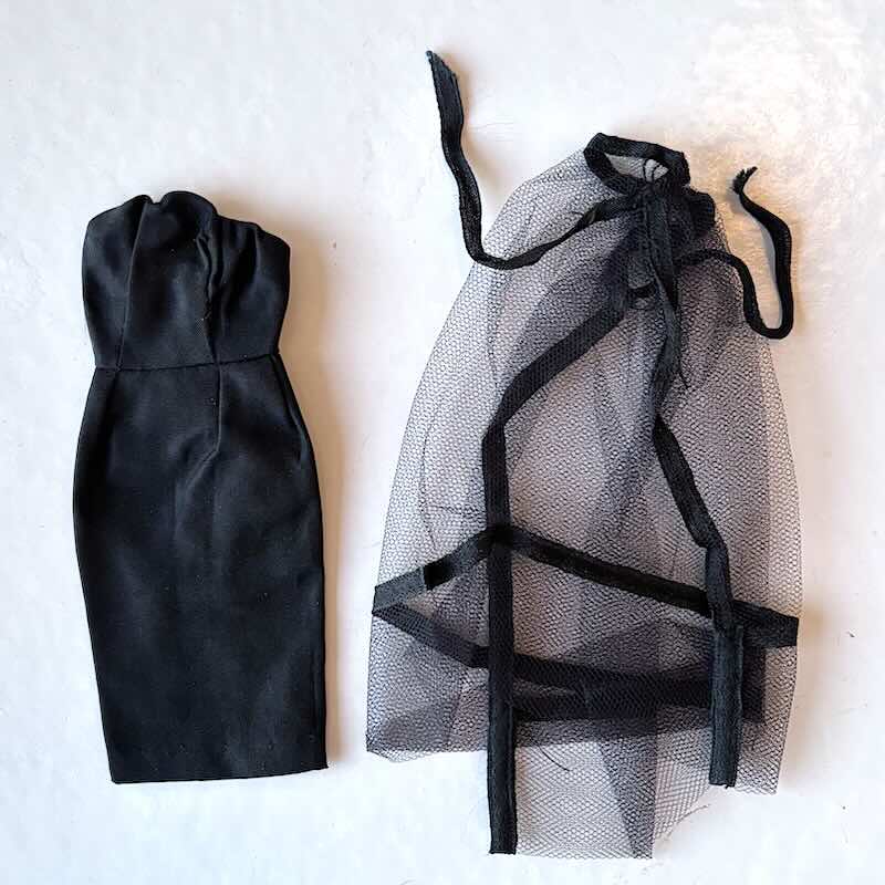 Snygga vintage setet Barbie #1609 Black Magic Ensemble från 1964-1965 i fint skick. Svart klänning och cape.
