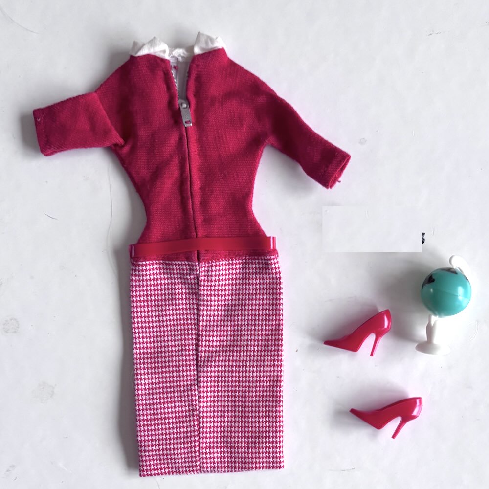 Snygga vintage setet Barbie #1622 Student teacher från 1965-1966, nästan komplett och i mycket fint använt skick. Stilettklackarna märkta Japan, klänningen fin och krispig, jordgloben fin.