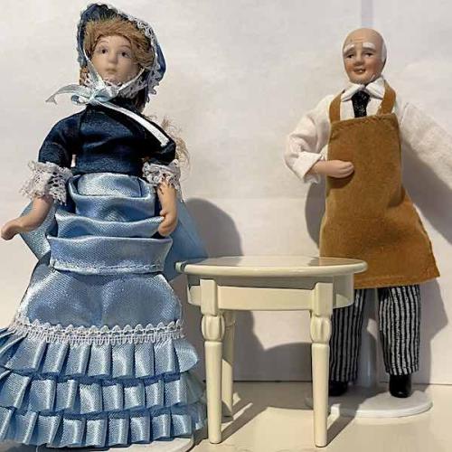 Ett stilfullt och praktiskt bord i vitlackerad metall för mus-familjen. Passar från 3 år. Mått ca H 6,2 cm x B 7 cm x D 5,2 cm. Docka, säng eller lampa ingår ej, de finns med för dekoration på bild 2. Bilden här nedan visar att bordet fungerar utmärkt med dockor och tillbehör i skala 1:12.