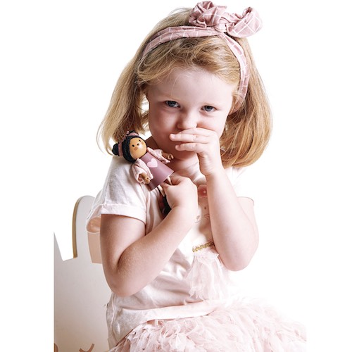 Charmiga Ayana är tillverkad i trä med böjbara armar och ben. Hon är Amys bästa vän. Hennes lilla träkatt medföljer. Dockan är rolig att leka med på egen hand och passar perfekt till dockskåp från Tender Leaf. Mått dockan ca H 9 x 3,5 x 10 cm. Passar från +3 år pga små delar