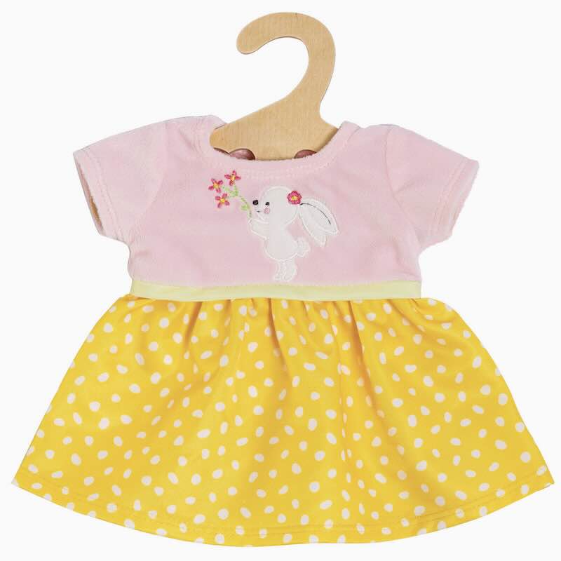 Set klänning som öppnas och stängs i ryggen med kardborrband. Passar dockor ca 28-35 cm. Handtvättas.