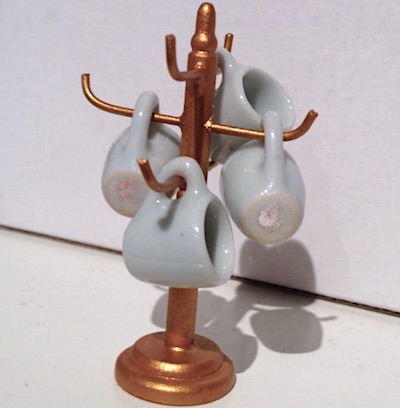 En dekorativ hållare för muggar eller kanske ölbägare/-glas som har handtag. Själva hållaren är tillverkade i en polyresinblandning som gör att den inte känns plastig. Snyggt på cafédiskar, i kök, hotell, restauranger och barer. Höjd ca 4 cm. Obs, muggarna ingår ej utan finns med för att visa funktion och storlek.
