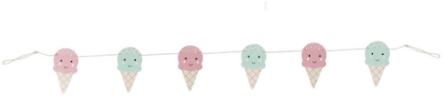 Jättefin dekoration för barnrum och kalas, istället för flaggspel/vimplar så är det glada glassar tillverkade i trä och lackerade i fina färger. Ingen leksak, men fint som dekoration! Mått bandet/snöret från ögla till ögla ca 70 cm.