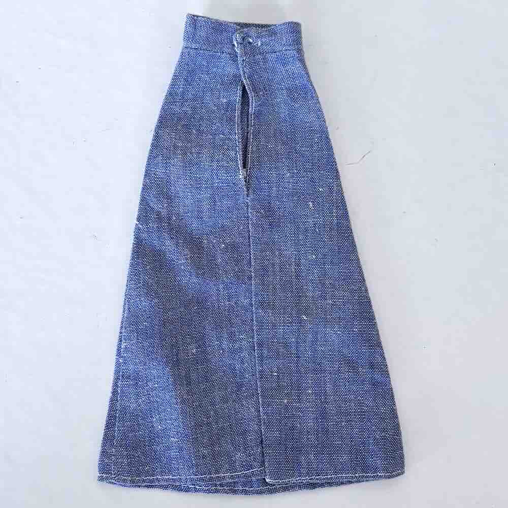 Snygg långkjol i jeansmaterial med dekor på framsidan. Knapp-knäppning bak. inga synliga skador eller missfärgningar