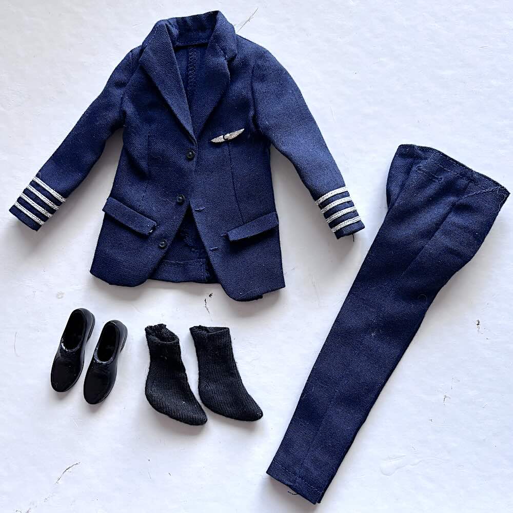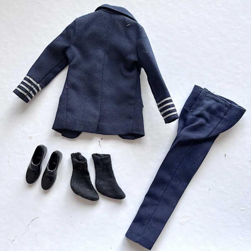 Snygga setet Ken #0779 American Airlines Captain från 1964-1965 i fint lekt skick. Med mörkt marinblå kavaj, byxor, svarta strumpor och svarta Japan-märkta skor.