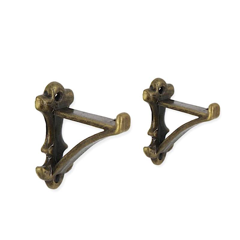 Set med två konsoller i bronsfärgad metall m små skruvar, för att göra en egen hylla/vägghylla. Mått konsollerna 1,8 cm x 1,8 cm.