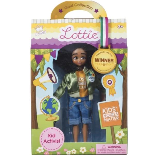 Den 18 cm höga dockan kommer med: en vacker tiara, en gul T-shirt med "kids voices matter", grön jacka med Stand Up-märke, denim shorts, vita tygskor, armband, en megafon och ett plakat där det står "Kids´ Voices Matter". Dockan kan stå av sig själv, och utformades utifrån proportionerna på 9-åriga tjejer. Armar och ben kan vridas och riktas som man vill, och knäna går att böja försiktigt till tre olika positioner. Kläderna går att ta av och passar till alla andra dockor i Lottie-serien. Passar från 3 år