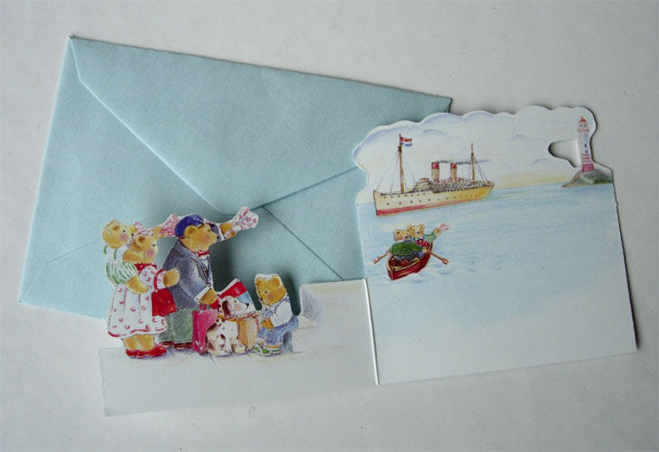 Litet fint stansat och dubbelvikt kort med kuvert. Insidan av kortet fortsätter motivet på kanten men du har plats att skriva din hälsning. Mått kuvertet ca 6 x 8,5 cm.
