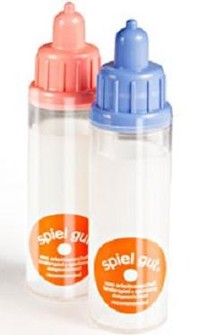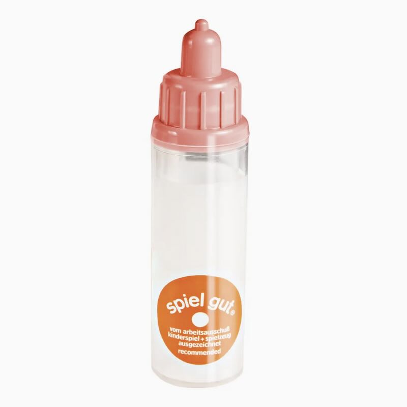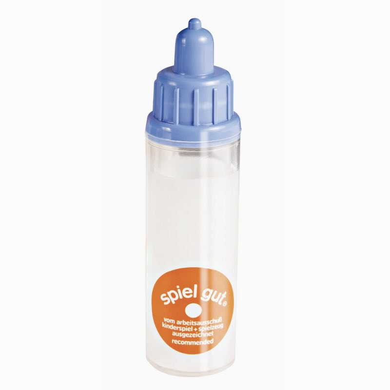 En magisk nappflaska för dockan, där "mjölken" försvinner när man matar dockan. Välj blå eller rosa. Mått 12 cm.