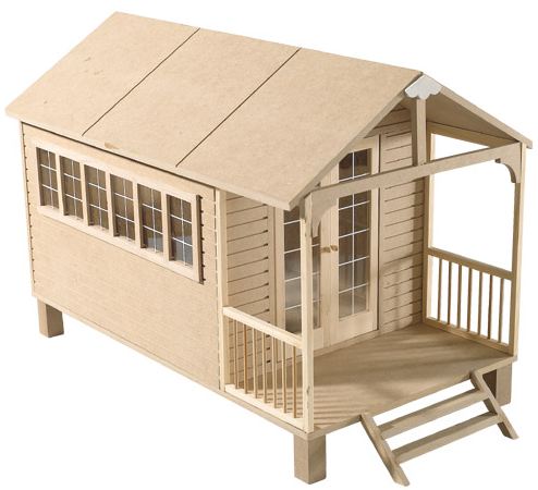 The Summer House Kit ger dig massor av möjligheter att skapa fina miljöer. Varför inte en friggebod, kanske en sommarstuga, en fjällstuga eller ett extra ungdomsrum? Du sätter själv samman byggnaden, den kommer trären, så du väljer också vilken färg huset ska ha, eventuella tapeter osv. Allt i skala 1:12, från engelska leverantören Dollhouse Emporium.