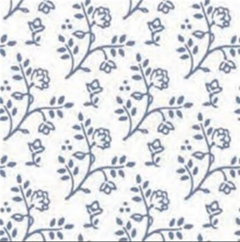 En trevlig tapet för dockhus, dockskåp och tittskåp. Vit botten med blå blommor. Mått 41 cm x 29,7 cm. Bilden visar en detalj av tapeten. Använd tapetklister vid montering.