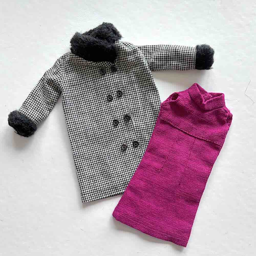 Klänning och kappa ur setet Tressy Winter Journey, by Palitoy, 1964-1969 i fint lekt skick.